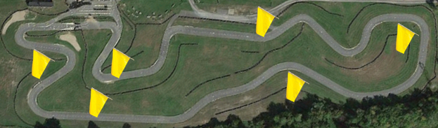 a) There is oil on the track. Be extra careful. b) The start was not good, slow down, regroup in your starting order for a restart c) You're about to be lapped. Carefully move off the racing line to let karts pass. d) There are birds on the track, be extra careful. |